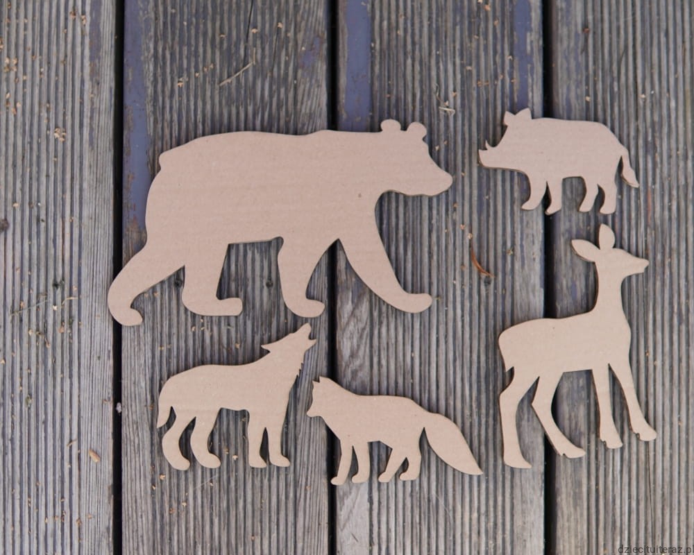 Zestaw 5 zwierząt: niedźwiedź, lis, dzik, wilk, sarna.