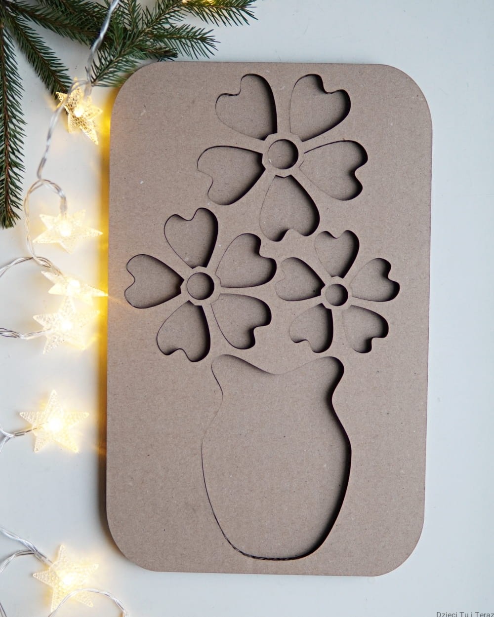 Sensokarton: kartonowy model kwiatów w wazonie w kształcie prostokąta o wymiarach 31cm x 20cm (gruba tektura dwuwarstwowa)