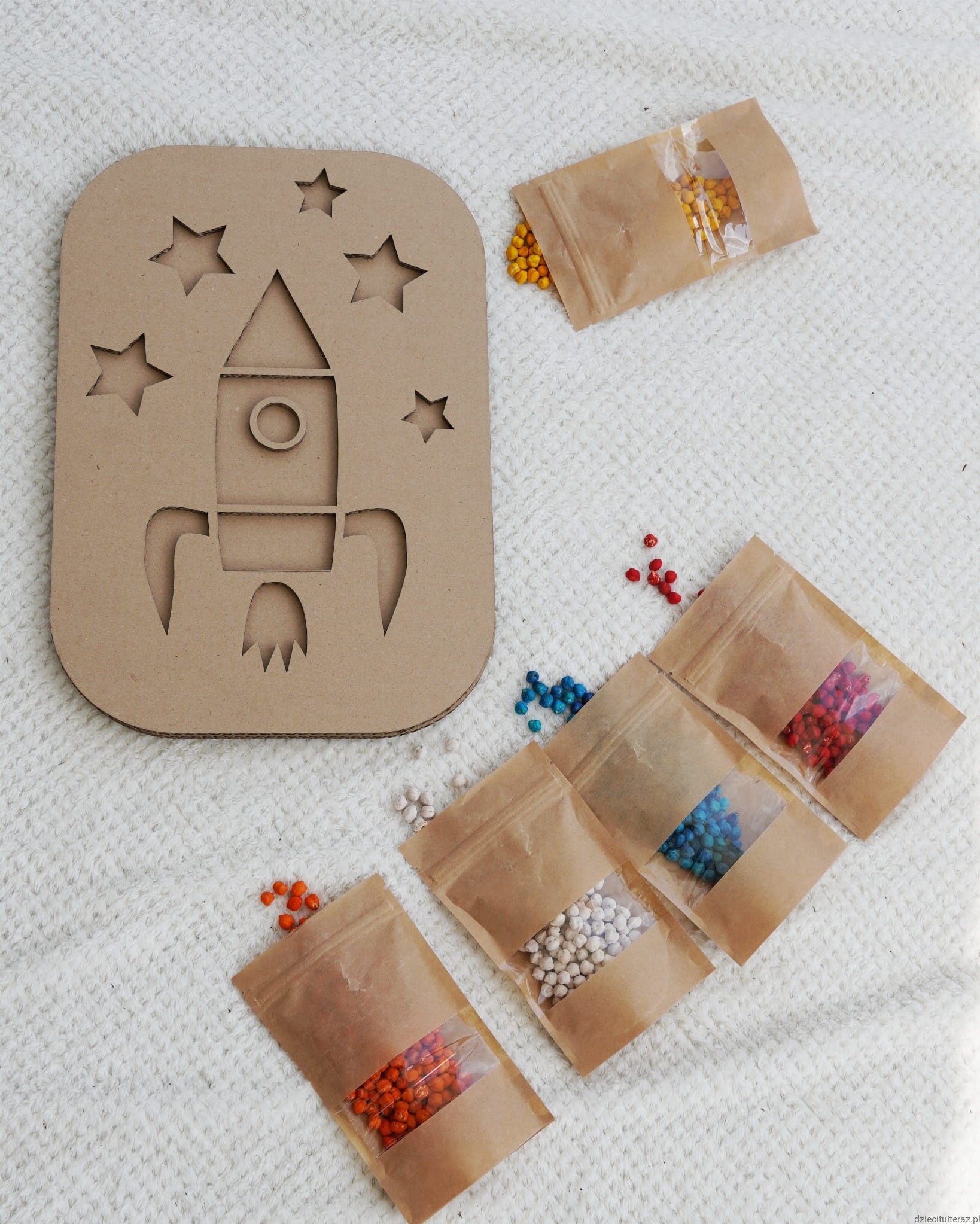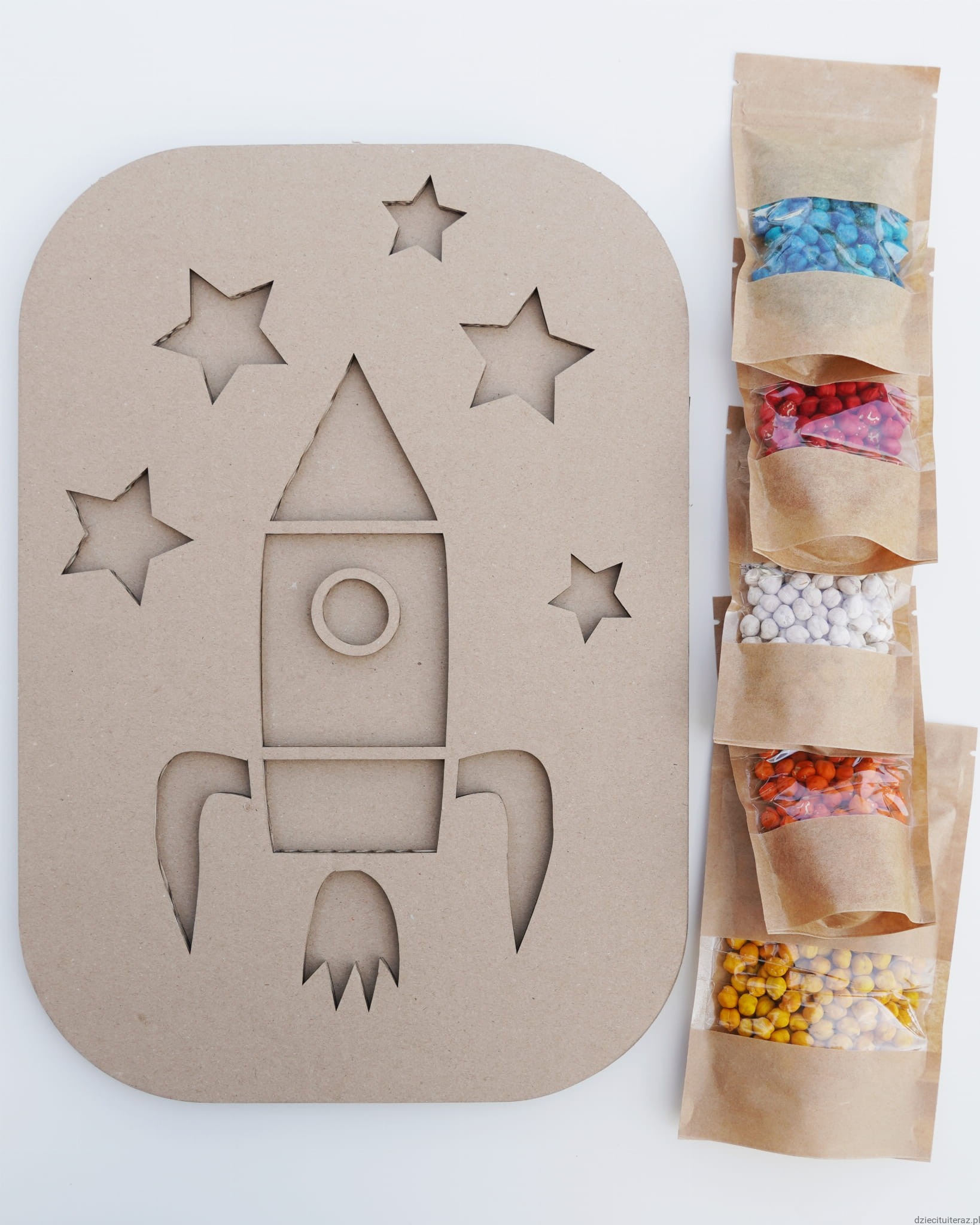 - kartonowy model rakiety z gwiazdami o wymiarach 39,5cm x 27cm (gruba tektura dwuwarstwowa)